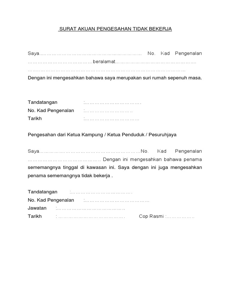 Surat Akuan Pengesahan Tidak Bekerja Pdf